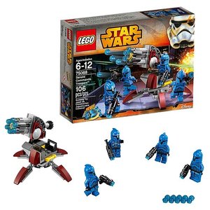 Zabezpiecz Senat, stawiając na straży elitarnych komandosów ! Ta ekipa doskonale wyszkolonych i uzbrojonych po zęby żołnierzy jest już znana z animowanego serialu telewizyjnego Clone Wars. Wystrzel z blastera, a potem umieść szturmowca na obrotowej podstawce i zalej wroga pociskami z szybkostrzelnej wyrzutni, jakiej jeszcze nikt nie widział! W tym rewelacyjnym pakiecie bitewnym znajdziesz 4 minifigurki z bronią: Kapitana oddziału senackiego i 3 komandosów.