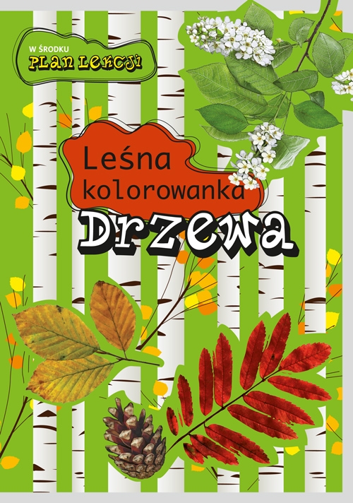 Kolorowanka dla dzieci. W zeszycie znajdują się kontury liści, szyszek, kwiatów, owoców i gałązek kilkunastu rodzimych drzew leśnych.Dziecko, kolorując je, łatwo zapamięta charakterystyczne kształty i nazwy drzew. Na wewnętrznej stronie okładki praktyczny plan lekcji.