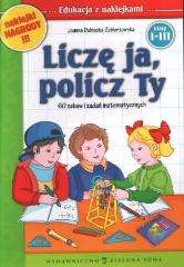 Liczę ja, policz Ty"" to książeczka z ćwiczeniami (ponad 60 różnorodnych zadań) dla uczniów z klas I-III. Główni bohaterowie publikacji, Ola i Dominik, zmagają się z problemami matematycznymi. Zadaniem czytelników jest im pomóc. ""Liczę ja, policz Ty"" to pozycja przeznaczona zarówno dla tych dzieci, które chcą utrwalać wiedzę matematyczną nabytą w szkole, jak i dla tych, które mają trudności w uczeniu się matematyki. Pracując w domu i rozwiązując zadania, dziecko samodzielnie uczy się i zaczyna rozumieć trudne dla niego zagadnienia. Odpowiednio dobrane ćwiczenia pozwalają na uczenie się przez zabawę. Dziecko, rozwiązując zadania, które przypominają znane z codzienności sytuacje, zaczyna uważać matematykę nie za ciężki szkolny obowiązek, ale za przyjemność. Wykonując ćwiczenia, najmłodsi uczniowie doskonalą swoje umiejętności manualne i spostrzegawczość, uczą się logicznego myślenia, dostrzegania cech wspólnych i różnicujących, identyfikacji, klasyfikacji. Czytelnik jest motywowany do wykonywania kolejnych ćwiczeń: za rozwiązanie zestawu zadań zamieszczonego na jednej stronie czeka go nagroda - naklejka. Uzupełniając naklejkami zgodnie z instrukcją ostatnią stronę książki, dziecko otrzyma swoją Planszę Sukcesów.