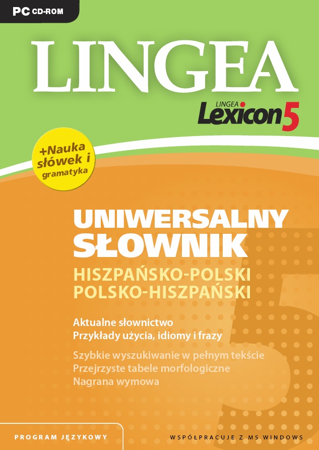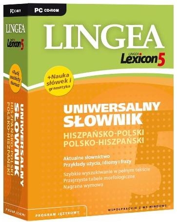 Lingea Lexicon 5 Uniwersalny słownik hiszpańsko-polski i polsko-hiszpański zawiera około 40 000 haseł, liczne przykłady, związki frazeologiczne oraz tabele odmian. Umożliwia odsłuchanie prawidłowej wymowy, zawiera zarys gramatyki, słownik użytkownika i rozbudowany słownik tematyczny. Lexicon 5 doskonale sprawdzi się w instytucjach szkolnych, państwowych oraz w firmach.