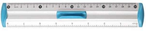 Linijka wykonana z aluminium ze skalą po dwóch stronach. Posiada wygodny uchwyt na ołówek. Długość linijki 20 cm. Kolor niebieski.