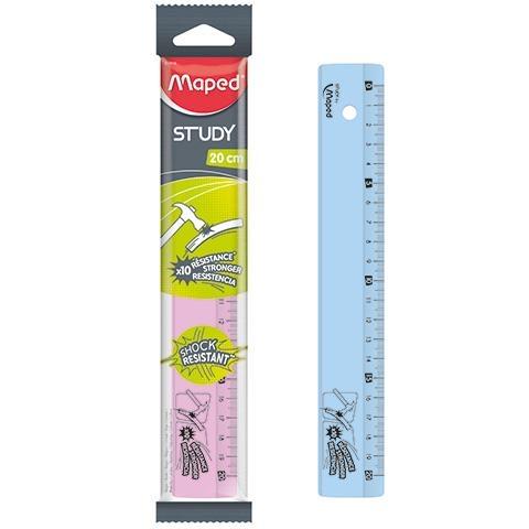 Mocne i elastyczne linijki STUDY, 10 razy bardziej odporne na złamanie niż standardowe linijki. Nieścieralna podziałka odporna na promieniowanie UV. Zaokrąglone rogi. Skala po obu stronach. Transparentne kolory rożowy i błękitny. Długość 15 cm. JS 1 szt