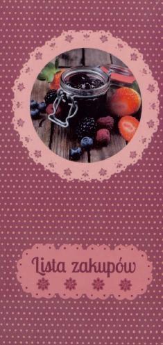 Lista zakupów to 96 stron do notowania codziennych zakupów. Zaprojektowana została jako estetyczny notes z kartkami, które łatwo można wyrwać, gdy nie chcemy zabierać ze sobą na zakupy całego notesu. Praktyczny format 20x10 cm, tak aby wszystkie potrzebne artykuły się zmieściły. Każda kartka obustronnie zadrukowana. Na wewnętrznej stronie okładki praktyczna „ściąga” tj. lista podstawowych produktów o których nie można zapomnieć przygotowując listę zakupów.