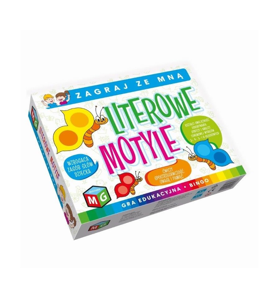 „ LITEROWE MOTYLE " są świetną zabawą oraz doskonałym przygotowaniem do nauki czytania i pisania. Dzięki czterem stopniom trudności wyrazów prezentowanych na planszach z motylami, gra pozwala na dostosowanie zabawy do umiejętności i wieku jej uczestników. Zawartość pudelka: plansze "motyl"- 8 szt, żetony z obrazkami- 64 szt, instrukcja.
