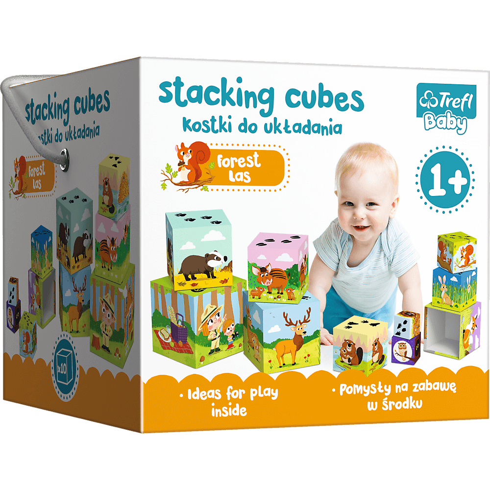Zestaw 10 kolorowych kostek różnej wielkości, które można układać w dużą wieżę lub inny, dowolny sposób. Dzięki wyjątkowym ilustracjom maluchy poznają życie w lesie oraz liczby od 1 do 10.