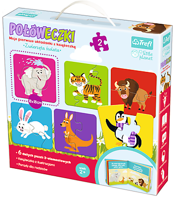 Połóweczki to pierwsze układanki dla najmłodszych. Dzięki zawartym w książeczce historyjkom maluchy poznają duże i małe zwierzęta z różnych zakątków świata. Dopasowywanie dużych 2-elementowych puzzli będzie stanowiło świetną zabawę po zakończeniu wspólnego czytania.