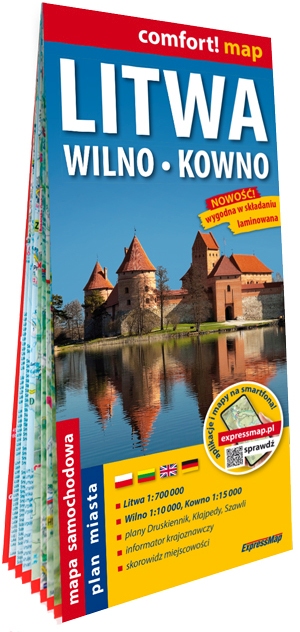 Dostojna wileńska katedra, wspaniały zamek w Trokach, malownicze jeziora auksztockie, piaszczyste plaże Mierzei Kurońskiej, słynna Aleja Wolności w Kownie. Tym wszystkim kusi turystów Litwa. Jeszcze więcej ciekawych miejsc pomoże odnaleźć dwustronnie laminowana, wygodna w składaniu mapa samochodowo-turystyczna tego kraju. Publikacja zawiera ponadto:
