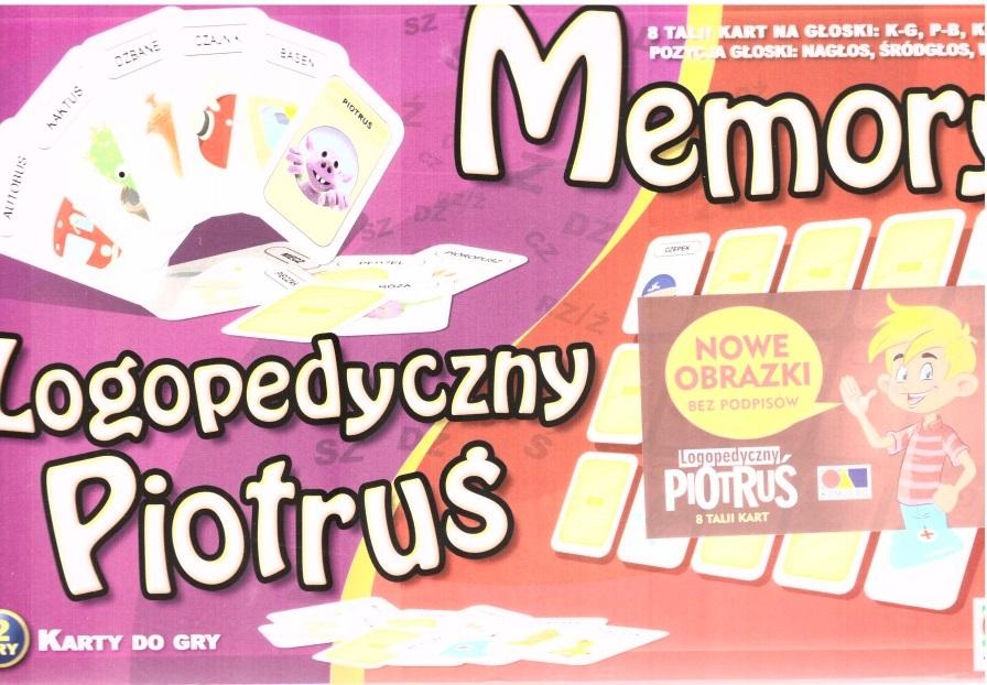 Gry wyrabiają spostrzegawczość, uczą rozwijać skojarzenia, ćwiczą koncentrację uwagi i pamięć.Uczestnicy gier oprócz poprawnego nazywania poszczególnych obrazków mogą układać z nich wyrażenia dwuwyrazowe, zdania i inne.Logopedyczny Piotruś - jest to prosta gra w karty przeznaczona już dla dzieci w wieku od 3-4 lat.Może w niej uczestniczyć od 2 do 5 graczy. Do gry należy wykorzystać 25 kart (12 par oraz jednego Piotrusia).Przed przystąpieniem do gry karty należy potasować a następnie rozdać kolejno wszystkim graczom. Możnarozdać wszystkie karty, bądź tylko niektóre (w zależności od możliwości i wieku dziecka). Z otrzymanych kartuczestnicy wybierają i odkładają wszystkie pary. Pozostałe karty uczestnicy gry układają w wachlarz.Następnie każdy gracz wyciąga jedną kartę od osoby siedzącej po prawej stronie. Jeśli dobrana karta pasuje dopary z inną posiadaną - całą parę, tak jak w poprzedniej fazie, gracz odkłada na bok. Czynności te wykonująkolejno wszyscy gracze. Dziecko, które pierwsze pozbędzie się wszystkich kart wygrywa, natomiast dziecko,które pozostanie z Piotrusiem przegrywa.Memory - gra zalecana jest dla dzieci już od 3 roku życia. Może w niej uczestniczyć od 2 do 5 osób.Do gry należy wykorzystać 12 par kart. Można też w zależności od wieku i możliwości dzieci wykorzystaćmniejszą ilość par. Karty układa się obrazkami do dołu. Karty można ułożyć w rzędach, bądź luźno poukładaćna stole. Następnie każdy z graczy (zgodnie z ruchem wskazówek zegara) odsłania po 2 karty i głośnowymawia ich nazwę. Dziecko, które odkryje dwa takie same obrazki zabiera parę ze stołu. Wygrywa ta osoba,która po odkryciu wszystkich kart będzie miała najwięcej par.Materiał obrazkowo-wyrazowy wykorzystany w grach:17. Karty Logopedyczny Piotruś. Część XVII -głoski BNAGŁOS: balon, banan, baran, bocian, bułka,burakŚRÓDGŁOS: cebula, obraz, obrus, ryba, śruba,żaba, żaby2x Piotruś18. Karty Logopedyczny Piotruś. Część XVIII -głoski DNAGŁOS: dach, deszcz, dom, dres, droga,dywan, dym,ŚRÓDGŁOS: lodówka, lody, mydło, pomidor,schody, wiadro2x Piotruś19. Karty Logopedyczny Piotruś. Część XIX -głoski FNAGŁOS: fale, farby, fasola, flet, foka, fotelŚRÓDGŁOS: agrafka, kaloryfer, szafa,szuflada, telefon, żyrafaWYGŁOS: szeryf2x Piotruś20. Karty Logopedyczny Piotruś. Część XX -głoski GNAGŁOS: gałęzie, gama, gąbka, gęsi, gołąb,góry, gwoździe,ŚRÓDGŁOS: cegła, igła, noga, papuga, wagon,zegar2x Piotruś21. Karty Logopedyczny Piotruś. Część XXI -głoski KNAGŁOS: kasa, koc, koza, kula, kura,ŚRÓDGŁOS: laska, makaron, maska, miskaWYGŁOS: bąk, hak, leżak, zamek2x Piotruś22. Karty Logopedyczny Piotruś. Część XXII -głoski PNAGŁOS: pajac, parasol, pas, plecak, pomidor,półkaŚRÓDGŁOS: lampa, lupa, małpa, mapa, sopel,zapałkiWYGŁOS: sierp2x Piotruś23. Karty Logopedyczny Piotruś. Część XXIII -głoski TNAGŁOS: tablica, talerz, telefon, toryŚRÓDGŁOS: auto, buty, motor, motyl, sałataWYGŁOS: płot, policjant, samolot, zeszyt2x Piotruś24. Karty Logopedyczny Piotruś. Część XXIV -głoski WNAGŁOS: waga, walec, wazon, wąż, woda,worek, wózekŚRÓDGŁOS: krawat, krowa, ołówek, owoce,rower, sowa2x Piotruś