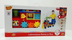 Lokomotywa Rośnij ze mną jest wielofunkcyjną, muzyczną zabawką, wspomagającą dziecko podczas nauki chodzenia. Ta zabawka będzie towarzyszyła dziecku przez długi czas, oferując mnóstwo funkcji. Zabawka „rośnie” razem z dzieckiem. Dla siedzących dzieci jest interaktywnym centrum zabawy. Następnie zamienia się w chodzik, zapewniający solidne oparcie przy stawianiu pierwszych, samodzielnych kroków. W końcu staje się jeździkiem. Zabawka wyróżnia się żywymi, kontrastującymi kolorami. Wesoła muzyka, kolorowe światełka i różnorodne dźwięki prowokują dziecko do zabawy i aktywności ruchowej. Ta zabawka sprawi Twojemu dziecku mnóstwo radości.