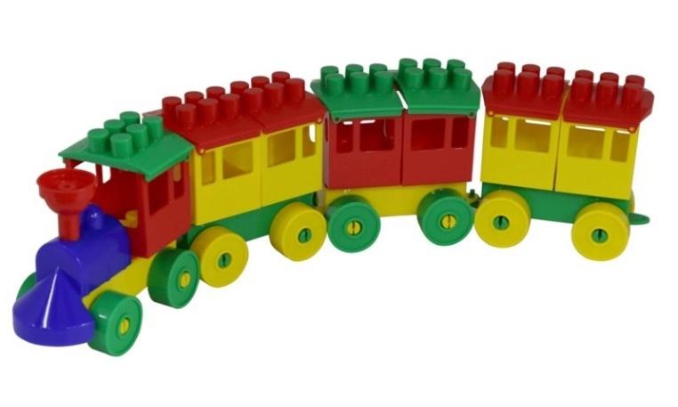 Lokomotywa z 3 wagonami składa się z mniejszych elementów. Są to klocki, koła, ściany i dach wagonów i lokomotywy. Konstruktor składa się z 36 elementów. Wiek 3+