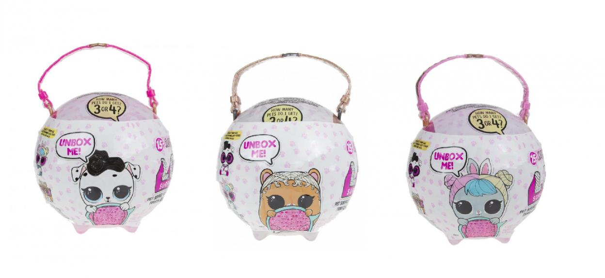 L.O.L. Surprise Biggie Pet z ponad 15 niespodziankami w środku. Zestaw jednego zwierzaka oraz dwóch malutkich zwierzątek oraz zestawu akcesoriów lub jedzenia dla nich.