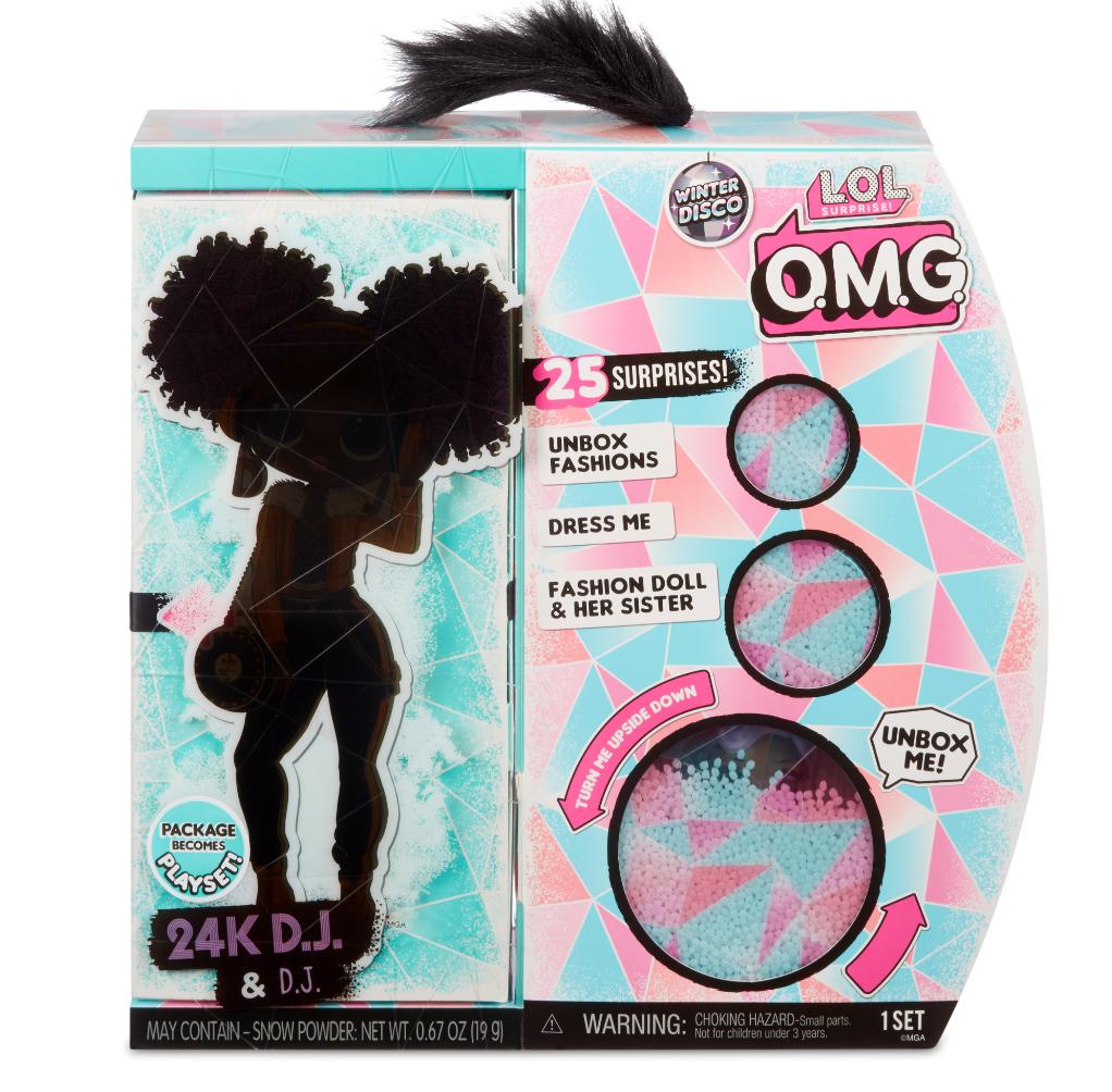 Otwórz ponad 25 niespodzianek! Lalki L.O.L. Surprise OMG z serii Winter Disco z mniejszymi siostrami! Zbierz wszystkie lalki OMG! Karton może służyć jako garderoba i przebieralnia. W zestawie stojak na lalkę i inne akcesoria modowe.