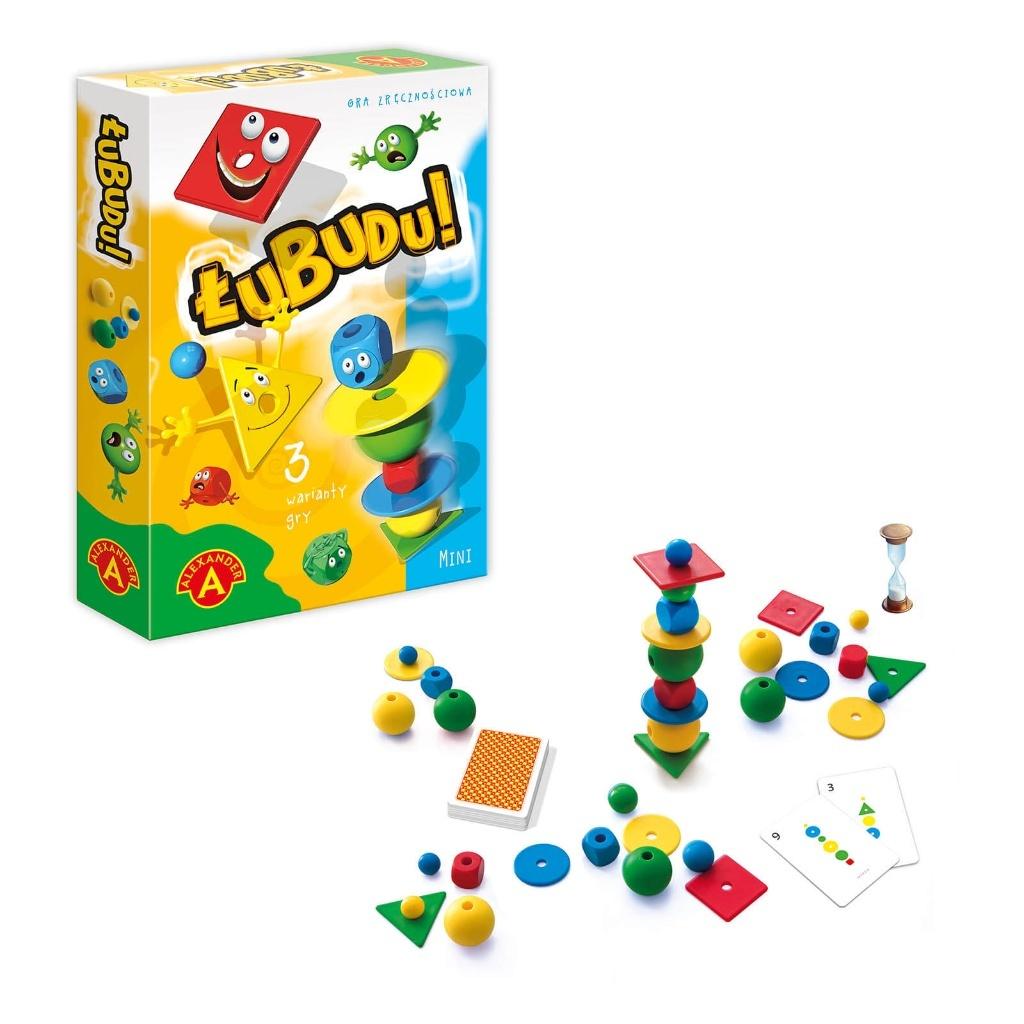 ŁUBUDU to gra zręcznościowa w 3 wariantach. Zadaniem jej uczestników jest zbudowanie wieży z plastikowych elementów o różnym kształcie i wielkości. W zależności od wariantu gry wygra ten, kto najszybciej ułoży określony wzór wieży lub kto zbuduje najwyższą wieżę. Gra jest niezwykle emocjonująca, uczy cierpliwości, precyzji, zręczności i opanowania.