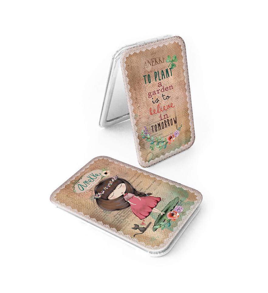 Wysokiej jakości lusterko kieszonkowe otwierane na zatrzask. Uroczy wzór Anekke z wykończeniem soft touch.