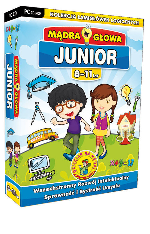Kolekcja 27 multimedialnych gir i łamigłówek logicznych dla dzieci w wieku 8-11 lat. Gry rozwijają umiejętność sprawnego myślenia i podejmowania decyzji. Świeże i oryginalne pomysły gwarantują doskonałą zabawę i pełny rozwój potrzebnych zdolności. Dzieci bawią się w swoim tempie, bez niepotrzebnego stresu, a efektem zabawy jest wydobycie oraz rozwój możliwości i potencjału intelektualnego. Łamigłówki pochodzą z serii Mądra Głowa i Mała Akademia.