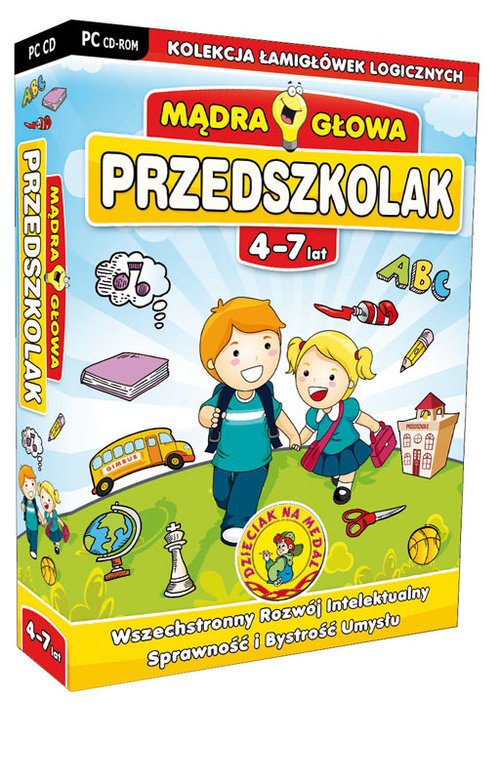 Kolekcja 27 multimedialnych gir i łamigłówek logicznych dla dzieci w wieku 4-7 lat. Gry rozwijają umiejętność sprawnego myślenia i podejmowania decyzji. Świeże i oryginalne pomysły gwarantują doskonałą zabawę i pełny rozwój potrzebnych zdolności. Dzieci bawią się w swoim tempie, bez niepotrzebnego stresu, a efektem zabawy jest wydobycie oraz rozwój możliwości i potencjału intelektualnego. Łamigłówki pochodzą z serii Mądra Głowa i Mała Akademia.
