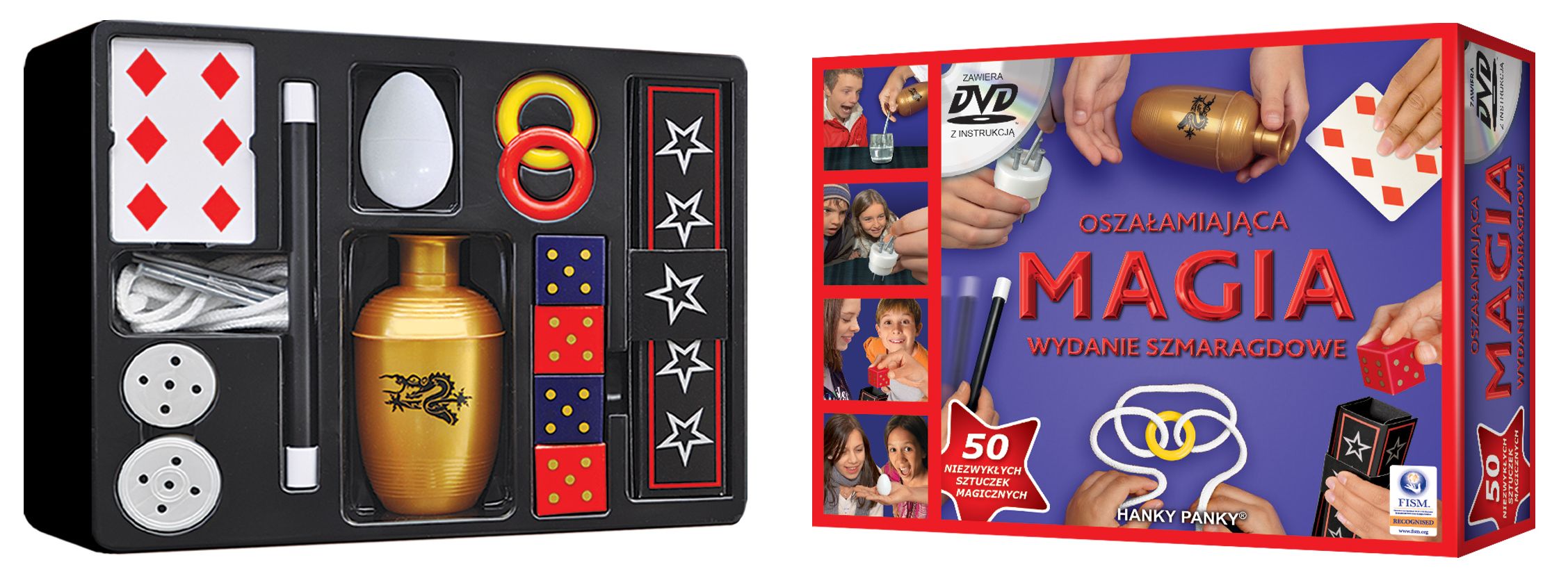 Magiczny zestaw Emerald Edition to zbiór naprawdę niesamowitych trików. Doskonała jakość rekwizytów i krystalicznie jasne instrukcje umożliwiają najmłodszym magikom wykonywanie naprawdę niesamowitych sztuczek!