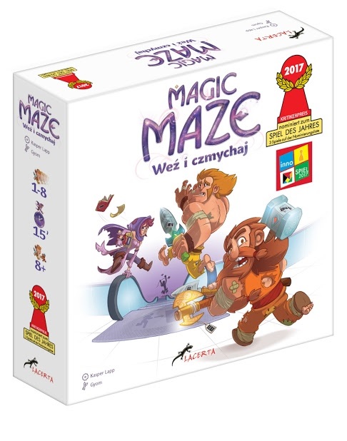 W grze Magic Maze każdy gracz może poruszać w dowolnym momencie dowolnym bohaterem. Każdy gracz ma jednak ograniczony zakres akcji, które może nim wykonać, np.: ruch na zachód, odkrycie nowego obszaru, jazda ruchomymi schodami, itp. To co może wykonać jeden gracz, nie jest dostępne dla nikogo innego. Dlatego współpraca jest tu kluczowa. Jest jednak jedno "ale"... w grze nie wolno mówić, ani pokazywać. Jesteście zainteresowani? Z pewnością musicie zagrać. Czeka Was mnóstwo świetnej zabawy.