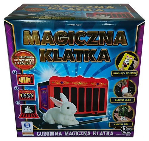 Magiczna klatka to wyjątkowy magiczny rekwizyt zaczerpnięty z wielkich scen i niezwykłych iluzji. Zestaw zawiera sztuczkę od balonikiem do królika i wiele innych łatwych do zrobienia trików. Instrukcja krok po kroku pokaże ci jak wykonać poprawnie każdą sztuczkę ale pamiętaj magia to przede wszystkim dobra ZABAWA!