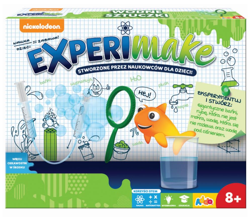 Eksperymentuj z wodą i twórz olbrzymie bańki, kaskady baniek, pękające bąbelki i wiele innych. Zaskocz swoich znajomych wodą, która się nie rozleje oraz rybami, które nie są mokre.