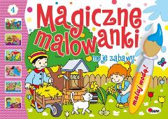Wystarczy zmoczyć pędzelek w niewielkiej ilości wody i pomalować obrazek, który stanie się... kolorowy! Każdy wzór na rysunku oznacza inny kolor.DZIĘKI SPECJALNEJ TECHNOLOGII DRUKU NIE POTRZEBUJESZ JUŻ FARB DO MALOWANIA!Zapewnij swojemu dziecku najlepszy start w świat książki - nasze publikacje to gwarancja jakości!Książki wydrukowano w ekologicznej technologii druku bezwodnego Waterless.W procesie druku nie stosuje się chemikaliów.Farby do druku bezwodnego zostały zaakceptowane przez producentów żywności i zabawek dla dzieci, ponieważ dzięki nim w zadrukowany papier nie wnikają niebezpieczne substancje, stosowane przy druku tradycyjnym.