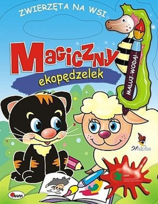 seria 4 kolorowanek do malowania samą... WODĄ!Wystarczy zmoczyć   pędzelek w niewielkiej ilości wody i pomalować obrazek, który stanie się...   kolorowy! Każdy wzór na rysunku oznacza inny kolor.DZIĘKI SPECJALNEJ   TECHNOLOGII DRUKU NIE POTRZEBUJESZ JUŻ FARB DO MALOWANIA!Zapewnij   swojemu dziecku najlepszy start w świat książki - nasze publikacje to gwarancja   jakości!Książki wydrukowano w ekologicznej technologii druku bezwodnego   Waterless.W procesie druku nie stosuje się chemikaliów.Farby do druku   bezwodnego zostały zaakceptowane przez producentów żywności i zabawek dla   dzieci, ponieważ dzięki nim w zadrukowany papier nie wnikają niebezpieczne   substancje, stosowane przy druku tradycyjnym.