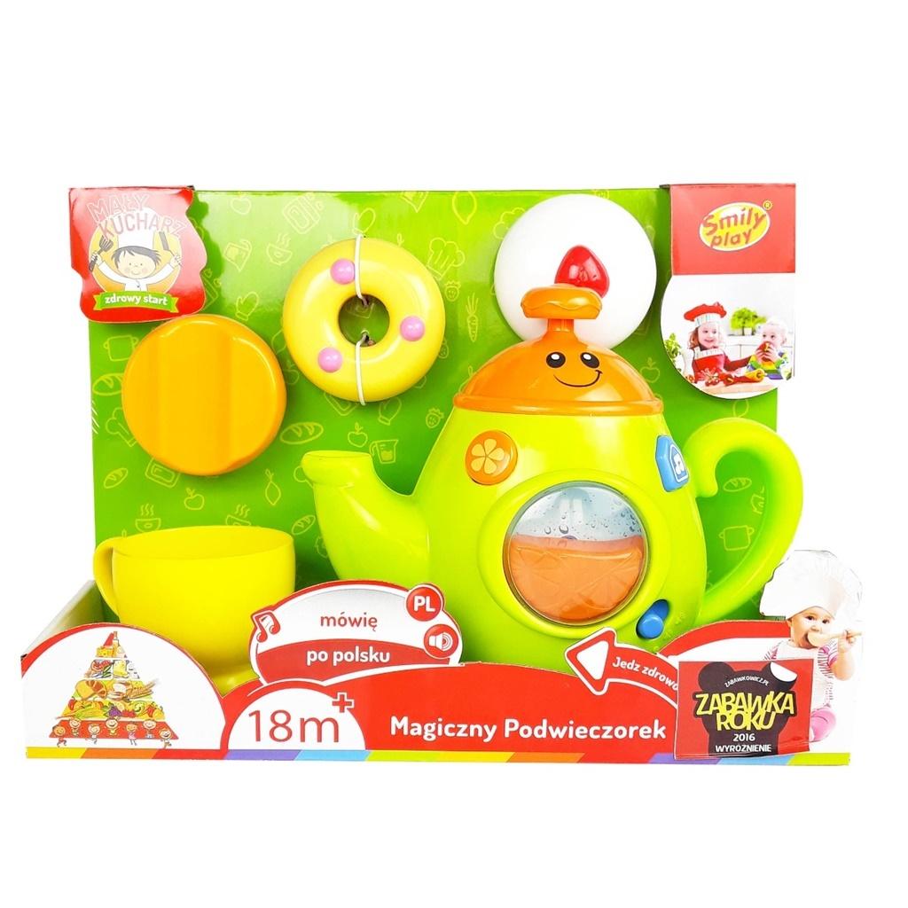 Nalanie herbaty do kubka ćwiczy koordynację wzrokową małego dziecka.