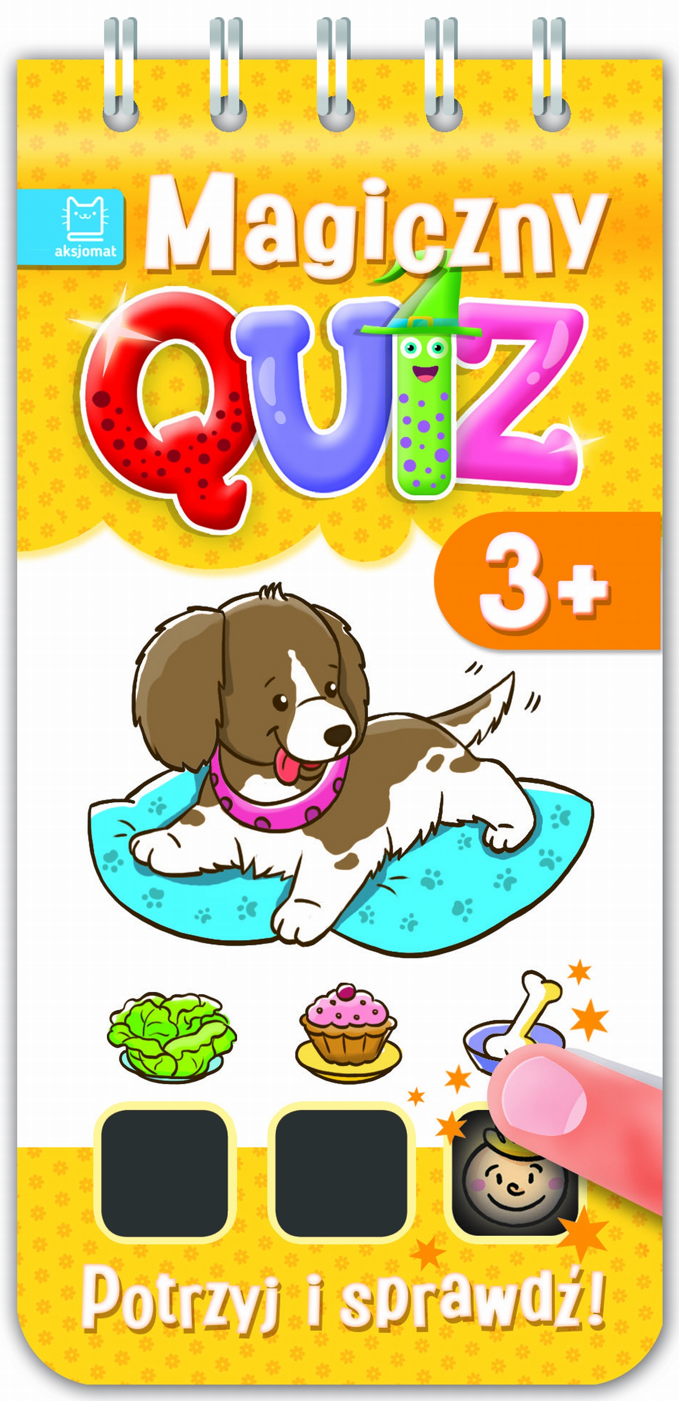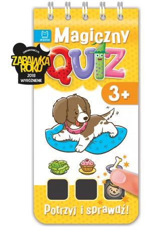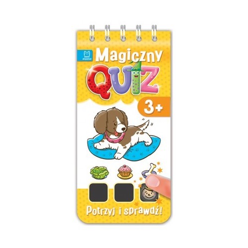 Magiczny quiz to świetna zabawa i sposób sprawdzenia wiedzy dziecka! Aby wskazać odpowiedź, należy przyłożyć palec lub delikatnie potrzeć pokryty farbą termiczną kwadracik – pod wpływem ciepła pojawi się znaczek poprawnej lub błędnej odpowiedzi. W książce zamieszczonych jest 76 pytań obrazkowych wraz z odpowiedziami. Quiz to pomysł na udany prezent i interesującą naukę.