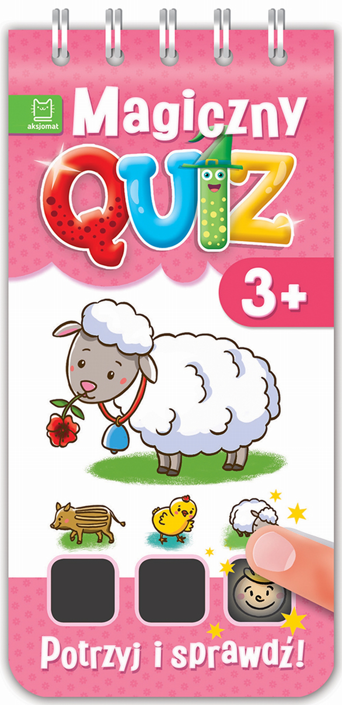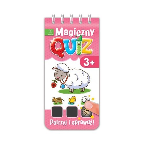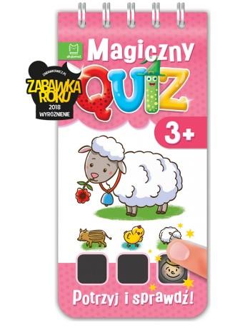 Magiczny quiz to świetna zabawa i sposób sprawdzenia wiedzy dziecka! Aby wskazać odpowiedź, należy przyłożyć palec lub delikatnie potrzeć pokryty farbą termiczną kwadracik – pod wpływem ciepła pojawi się znaczek poprawnej lub błędnej odpowiedzi. W książce zamieszczonych jest 76 pytań obrazkowych wraz z odpowiedziami. Quiz to pomysł na udany prezent i interesującą naukę.