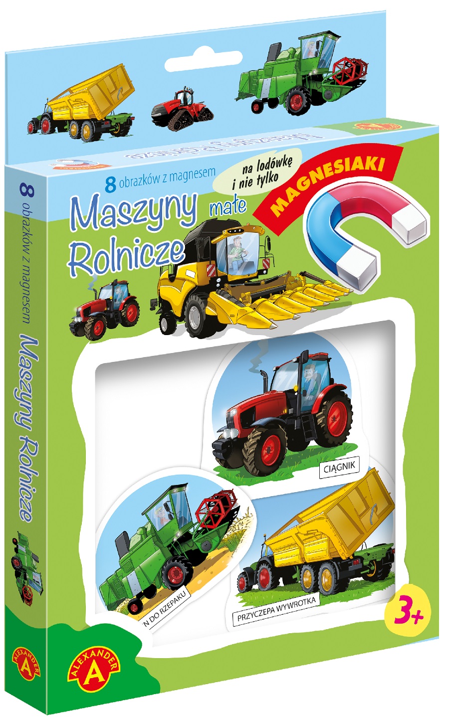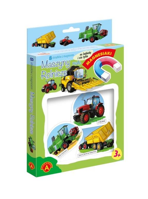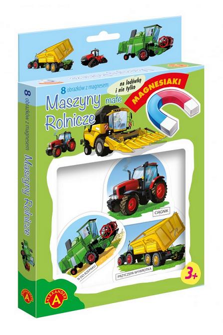 Magnesiaki Małe Maszyny Budowlane to zestaw tematycznych obrazków, powleczonych magnetyczną folią na odwrocie. Dzięki temu obrazki można układać nie tylko na stole lub podłodze, można je również ustawiać na pionowej ścianie lodówki lub innych metalowych płaszczyznach. Serię wyróżnia przede wszystkim bardzo ładna grafika, duże rozmiary, oraz gruba tektura, pozwalająca dzieciom na łatwy chwyt. Strona z obrazkiem powleczona została folią, aby łatwo było je czyścić