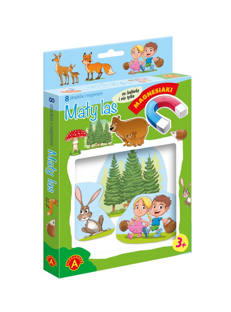 Magnesiaki Mały Las to zestaw tematycznych obrazków, powleczonych magnetyczną folią na odwrocie. Dzięki temu obrazki można układać nie tylko na stole lub podłodze, można je również ustawiać na pionowej ścianie lodówki lub innych metalowych płaszczyznach. Serię wyróżnia przede wszystkim bardzo ładna grafika, duże rozmiary, oraz gruba tektura, pozwalająca dzieciom na łatwy chwyt. Strona z obrazkiem powleczona została folią, aby łatwo było je czyścić