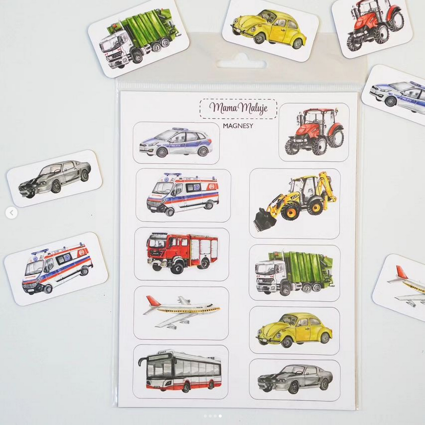 Magnesy z serii Pojazdy z pewnością pokocha każdy fan motoryzacji.