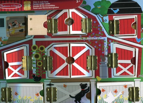 Drewniana makieta domu oraz miejsc wokół domu, którego tajemnice są strzeżone przez dziewięć drzwi, otwieranych przez odchylenie na zawiasach, nie ma tutaj żadnych zamków. Maluch koniecznie chce zajrzeć, co znajduje się za drzwiami. Jak się okazuje, po otwarciu, we wnęce mieszka jakieś zwierzątko. Dzięki magnesowi nie wypada ze swojego miejsca, zabawka może być również trzymana w pozycji pionowej. Ta gra pomaga w zdolnościach manualnych, ćwiczeniu małej motoryki, może być to też zabawa typu ,,memo""dla starszych dzieci, nauka zapamiętania, gdzie które zwierzątko mieszka.