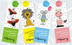 Magnetyczne zakładki do książki zawierające różne ilustracje oraz tabliczkę mnożenia.