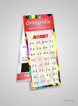 Zakładka z zapięciem magnetycznycm. Zakres wiedzy: szkoła podstawowa klasy l - lll. Alfabet, trudne wyrazy, podstawy ortografii. Format złożonej 80x190 mm, format całości 80x380 mm, uszlachetnienie folią błyszczącą, opkaowanie foliowe z euro zawieszką.