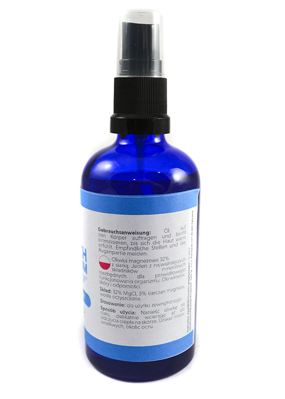 Mineralizator magnezowy do ciała. Wysokoskoncentrowany olejek zawierający aktywny magnez. Stosowany w kosmetyce, masażach, przy intensywnym uprawianiu sportu oraz do szybkiej suplementacji magnezu. Produkt pochodzenia naturalnego.