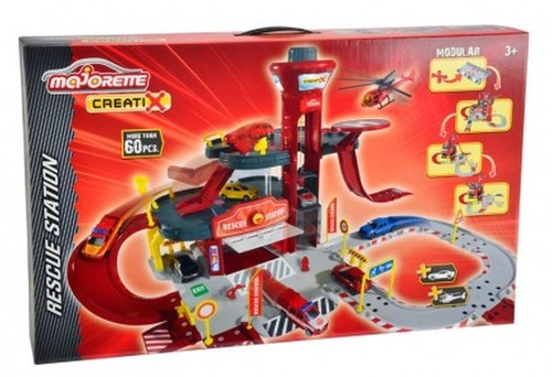 Garaże z serii Majorette można łączyć i przekształcać. Piętrowa baza z windą, garaże z wyrzutnią, 2 samochody w zetsawie.