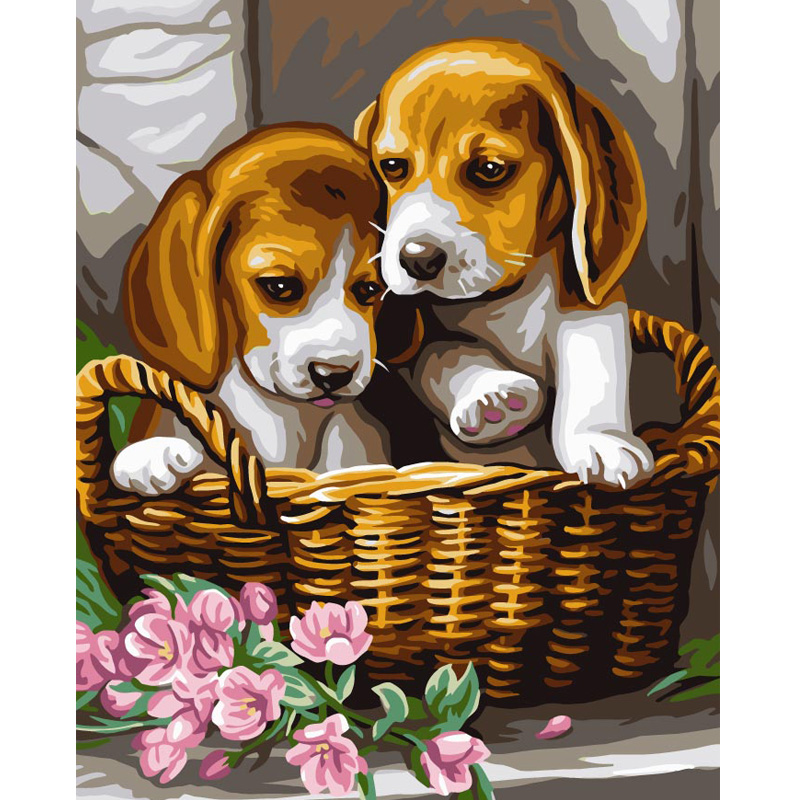 Opakowanie Malowanie po numerach 40x50cm Pieski w koszyku