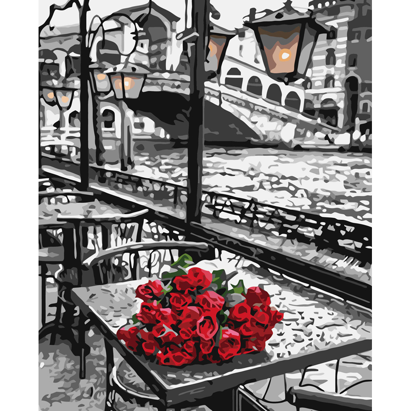 Malowanie po numerach 40x50cm Róże na stoliku