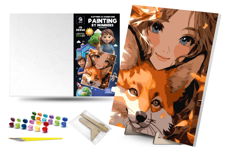 Zestaw do malowania numerycznego składa się z zagruntowanego płótna artystycznego na blejtramie, zestawu wysokiej jakości farb akrylowych odpornych na ścieranie i przypalanie o pojemności 2,5 ml 9% każda, nylonowych pędzli różnej wielkości, drewnianego stojaka oraz kartę kontrolną.