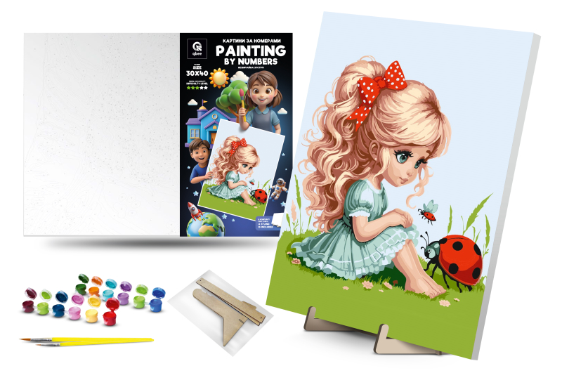 Zestaw do malowania numerycznego składa się z zagruntowanego płótna artystycznego na blejtramie, zestawu wysokiej jakości farb akrylowych odpornych na ścieranie i przypalanie o pojemności 2,5 ml 9% każda, nylonowych pędzli różnej wielkości, drewnianego stojaka oraz kartę kontrolną.