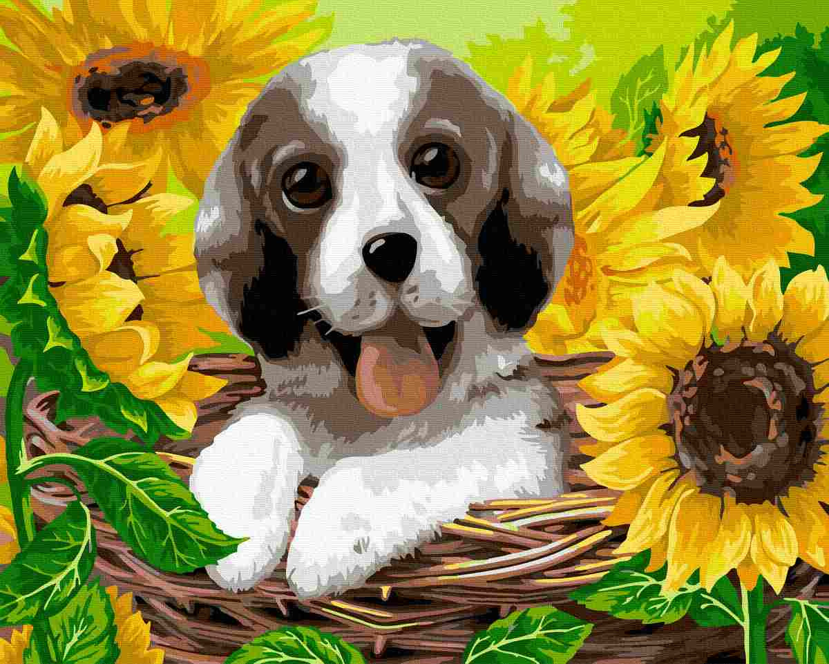 Malowanie po numerach - Szczeniak w Koszyku 40x50