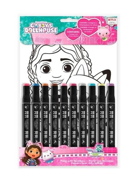 Zestaw kreatywny Gabby's Dollhouse to bogaty zestaw do kreatywnej zabawy dla dziecka. • 10 dwustronnych flamastrów • Wymiary: 29x23x1 cm • Materiał: PVC, papier • Zawartość : 2 kartki do rysowania po numerkach
