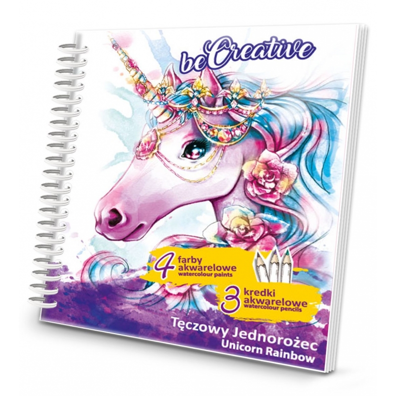 Zestaw kreatywny. Zawiera szkicownik, 2 inspiracje akwarelowe, kredki akwarelowe, farby akwarelowe i pędzelek.