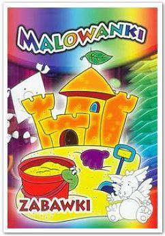 Ilustracje do kolorowania: królik z bączkiemzamek z piaskumiślatawiecpudełko z zabawkamipajacykgitaraślimak