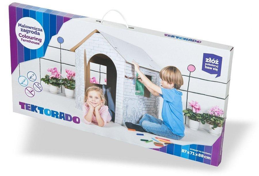 Domek, wykonany z 3-warstwowej, białej tektury falistej, do złożenia i kolorowania. Zawartość opakowania: 1 domek do kolorowania. Nie zawiera kredek.
