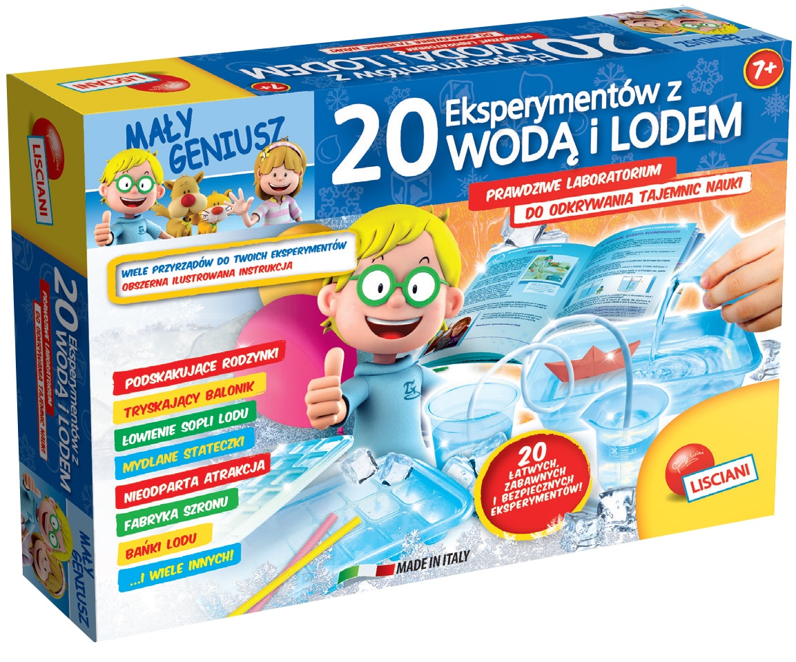 Laboratorium do odkrywania tajemnic nauki. 20 łatwych, zabawnych i bezpiecznych eksperymentów z wodą i lodem. Zestaw zawiera wszystko, co potrzebne do zabawy m.in. przyrządy do eksperymentów, obszerną ilustrowaną instrukcję i prawdziwy dziennik, w którym dziecko opisze swoje pierwsze doświadczenia naukowe.