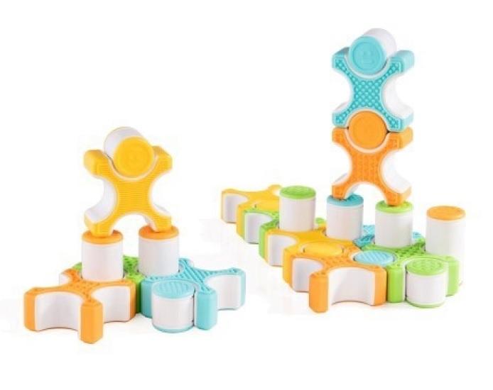 Duży zestaw kolorowych klocków magnetycznych w różnych kształtach, stworzony z myślą o najmłodszych konstruktorach. Elementy posiadają różną fakturę, co w korzystny sposób wpływa na rozwój zdolności poznawczych malucha i jego zmysł dotyku. Wśród klocków znajdują się takie kształty jak piramidki, długie walce oraz krótkie, ozdobione zabawną minką, co z pewnością rozweseli brzdąca i zachęci go do tworzenia własnych budowli. Klocki magnetyczne rozwiną wyobraźnię dziecka i pozwolą mu wcielić się w rolę prawdziwego artysty. W skład zestawu wchodzą 24 klocki, które zapakowane są w praktyczne, zakręcane pudełko z uchwytem.