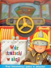Mały czytelnik łatwo się wczuje w rolę śpieszącego się kierowcy, gdy tylko sam chwyci za kierownicę. Umocowana w książeczce kolorowa kierownica obraca się, a wraz z jej ruchem przesuwają się obrazki za ""przednią szybą"". Chyba każdy malec marzy o ty, żeby pojechać do pożaru albo załatwić bardzo ważne sprawy na placu budowy.