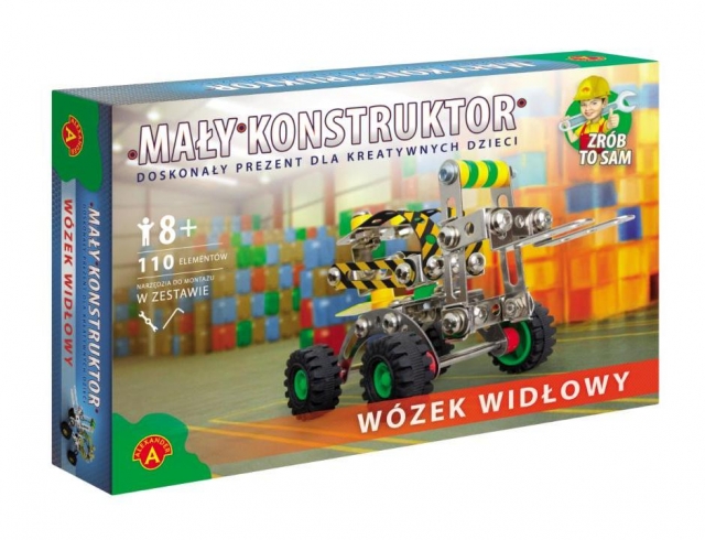Mały Konstruktor"" to zabawka do samodzielnego montażu. Zabawka wyposażona w narzędzia, którymi można skręcić i rozkręcić pojazd. Elementy zestawów można ze sobą łączyć tworząc własne konstrukcje. Zabawka pomaga kształtować proces zapamiętywania oraz rozwija zdolności manualne.